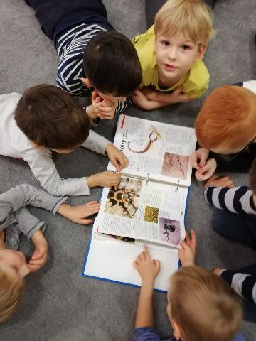 Na tych zajęciach główną bohaterką była pszczoła! Tak, tak - to owad który żył w czasach dinozaurów! Dzieci rozwiązywały zagadki, oglądały książki i film.