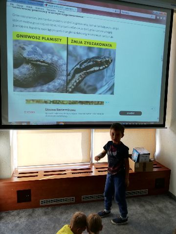 Zgodnie z umową dzisiejsze zajęcia odbyły się na temat wybrany przez dzieci czyli "WĘŻE". Temat był dla mnie trochę zaskoczeniem ale jednak warto o wężach z dziećmi rozmawiać, pokazywać filmy, zdjęcia, okazy przyrodnicze oraz właściwy do nich stosunek. Oglądaliśmy film jednocześnie dyskutując o jego treści. Dzieci były zdziwione, że w Polsce jest tak mało gatunków węży i , że tylko jeden z nich jest jadowity. Na tych zajęciach założyliśmy też z dziećmi dzienniczki, które będą służyły do ilustrowania zdobytej wiedzy. Dziś była to żmija zygzakowata i zaskroniec popularnie zwany padalcem. Na następne zajęcia "pojedziemy" aż do Egiptu, bo dzieciaki wybrały.....skorpiona!