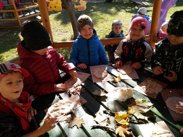 Tego dnia odbyło się pierwsze spotkanie z klubowiczami zoologami. W tym roku będziemy zajmować się tymi zwierzętami, które żyły dawno, dawno temu w prehistorii. A skąd o nich wiemy? Z wykopalisk i skamielin. Prehistoria, dinozaury i skamieniałości to jeden z ulubionych tematów zabaw dzieci w wieku przedszkolnym. Niestety dość trudno znaleźć prawdziwe skamieliny;) My zrobiliśmy współczesne odciski roślin w masie solnej– fascynująca zabawa na świeżym powietrzu!
