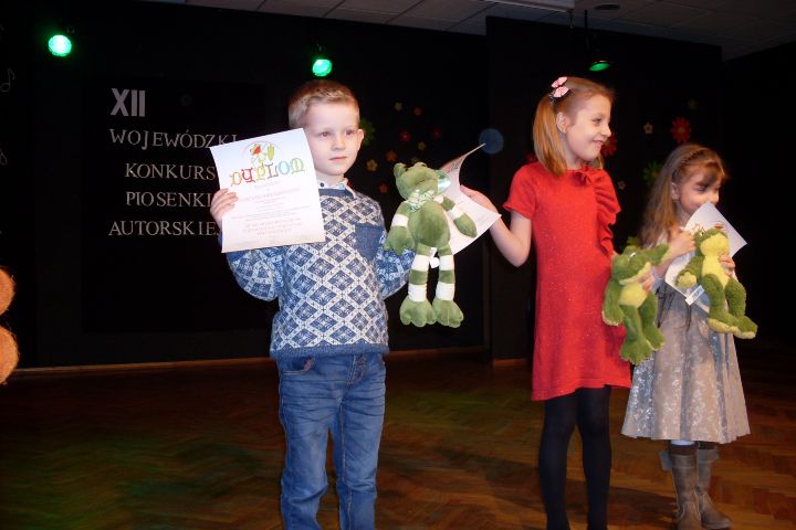 14. 10.03.2016r. Hubert Dardziński z grupy IV uczestniczył w XII Wojewódzkim Konkursie Piosenki Autorskiej. Zaśpiewał piosenkę pt. „Wakacji czas”,