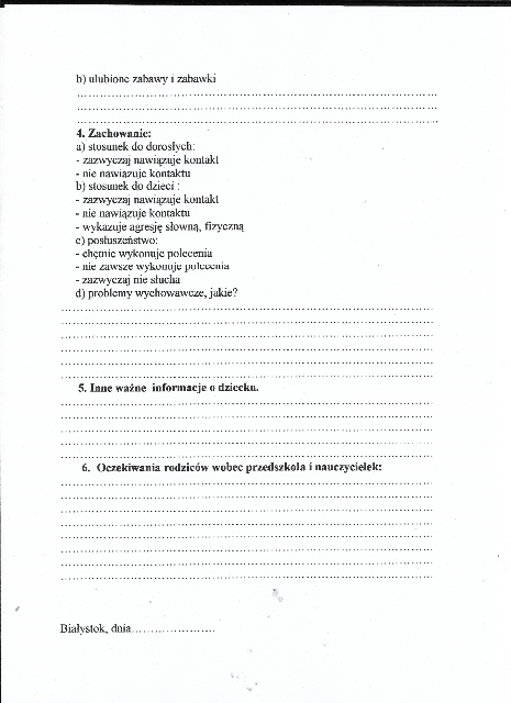 PONIŻEJ ZNAJDUJĄ SIĘ DRUKI DO POBRANIA - ANKIETA DO RODZICÓW NOWO PRZYJĘTYCH DZIECI
