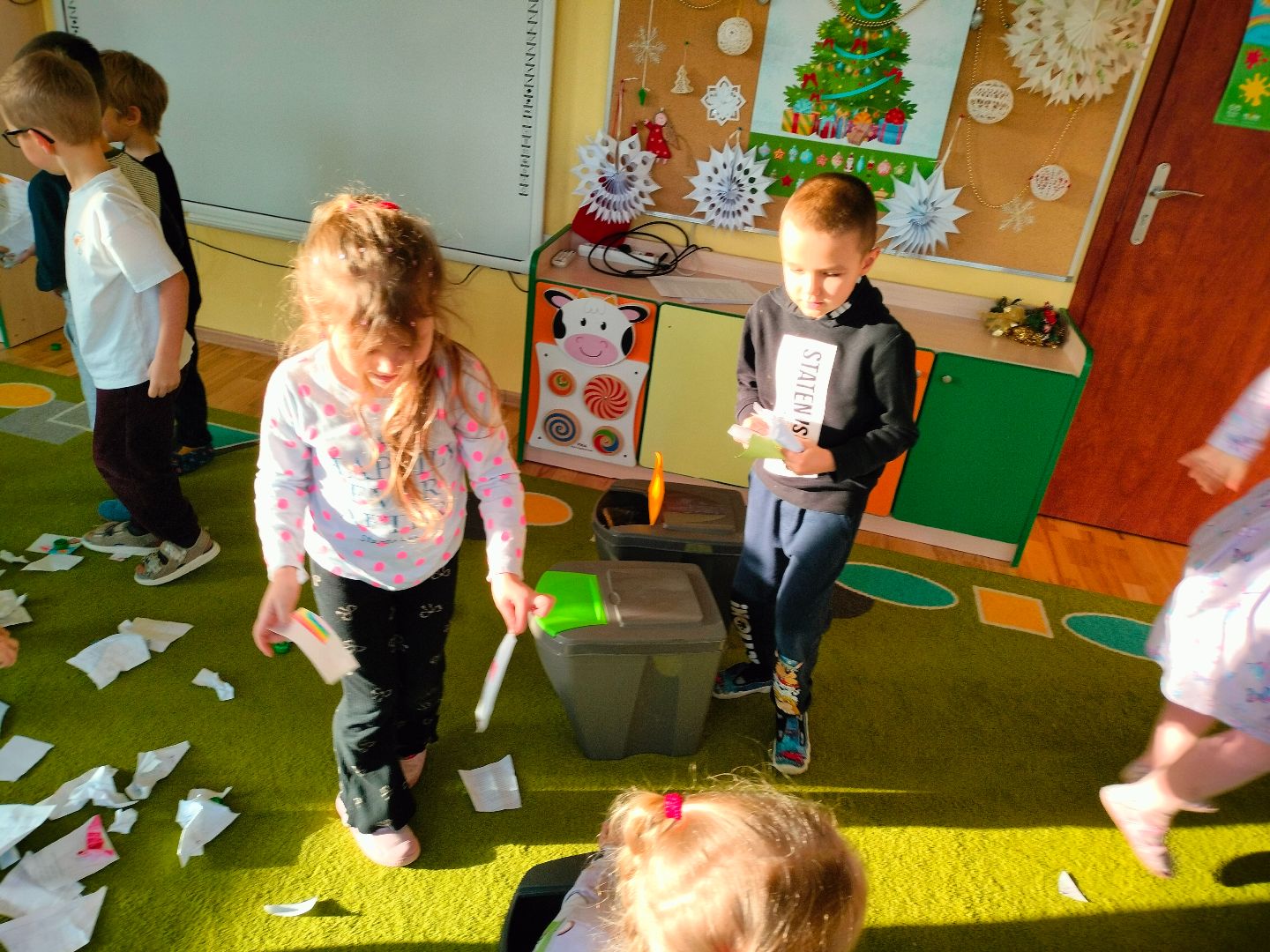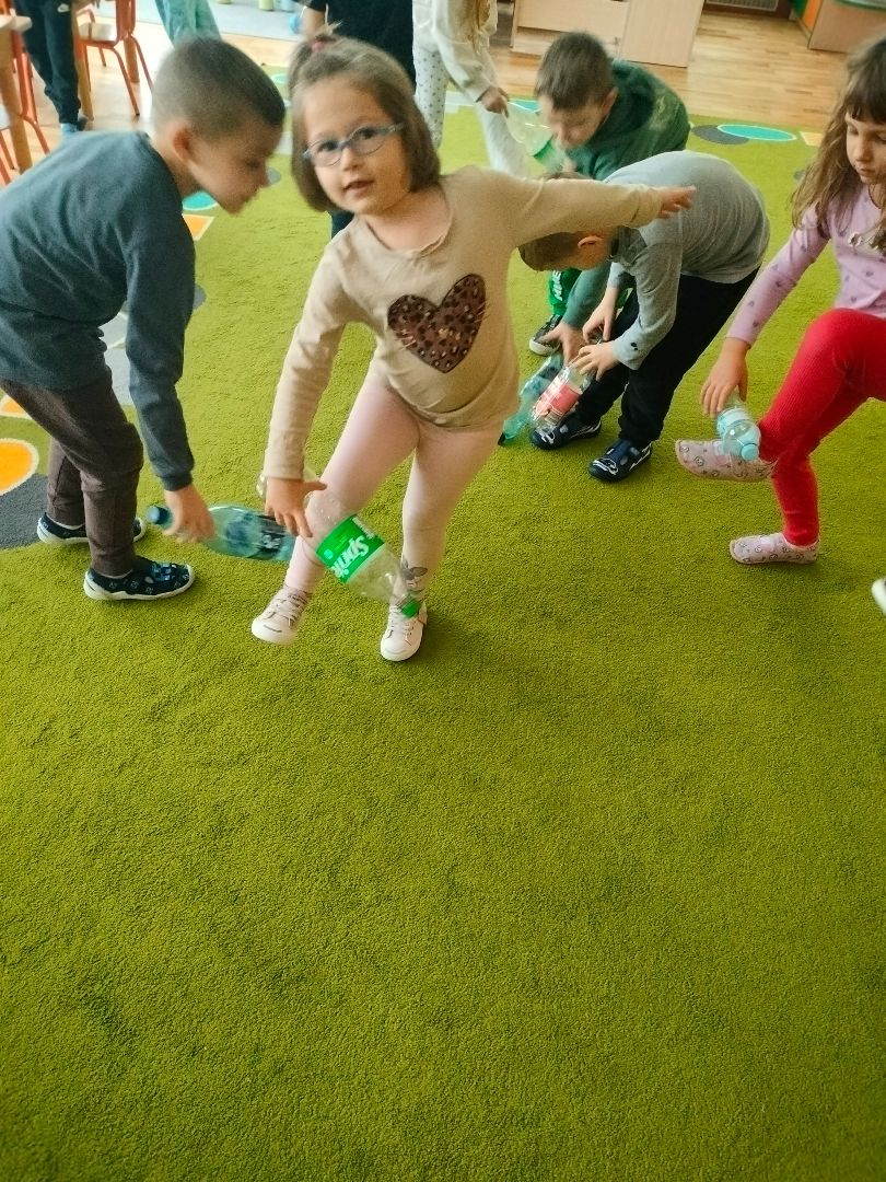 Na zajęciach dzieci rozwijały sprawność motoryczną poprzez różnorodne formy ruchu, takie jak bieganie, skakanie i czworakowanie, co wpływa na poprawę koordynacji, równowagi i siły mięśniowej. Wspierały rozwój umiejętności manipulacyjnych i precyzji ruchów poprzez ćwiczenia z butelkami i gazetami, takie jak turlanie, zgniatanie czy rzuty, co sprzyja rozwojowi motoryki małej i dużej. Kształtowały umiejętność współpracy i komunikacji w grupie poprzez wspólne wykonywanie zadań, takich jak turlanie butelek czy rzuty do celu.. Rozwijały wyobraźnię i kreatywność, zachęcając dzieci do tworzenia torów przeszkód i zabaw z recyklingowych przyborów. Promowanie świadomość ekologicznej i proekologicznej postawy poprzez wykorzystywanie materiałów z recyklingu, ucząc dzieci, jak można dbać o środowisko w codziennym życiu. Wzmacnianie motywacji do aktywności fizycznej poprzez zabawę i różnorodność ćwiczeń, sprzyja utrzymaniu pozytywnego nastawienia do ruchu i zdrowego stylu życia.